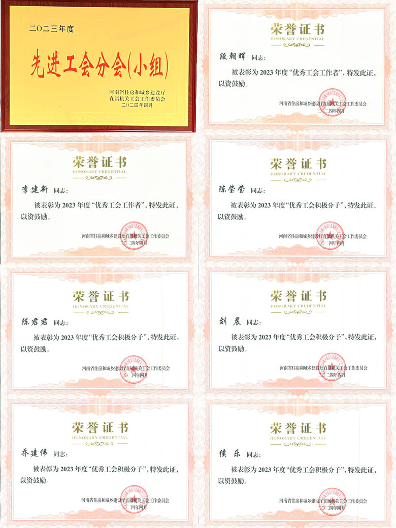 根據(jù)中共河南省住房和城鄉(xiāng)建設(shè)廳機(jī)關(guān)黨委印發(fā)《關(guān)于表彰2023年度優(yōu)秀共產(chǎn)黨員、優(yōu)秀黨務(wù)工作者和先進(jìn)基層黨組織的通報(bào)》(豫建機(jī)黨〔2024〕16號),河南省住房和城鄉(xiāng)建設(shè)廳直屬機(jī)關(guān)工會(huì)印發(fā)《關(guān)于表彰2023年度廳直工會(huì)工作先進(jìn)集體和先進(jìn)個(gè)人的通報(bào)》(豫建工直〔2024〕1號),我公司黨委及員工獲得表彰。