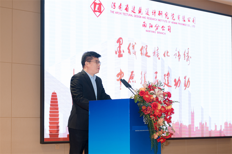 董海立副廳長受王藝廳長委托,代表廳黨組對河南省建筑設(shè)計院有限公司南陽分公司成立致以熱烈祝賀。他指出,黨的二十大倡導(dǎo)“人民城市人民建、人民城市為人民,提高城市規(guī)劃、建設(shè)、治理水平,打造宜居、韌性智慧城市”,為城市建設(shè)指明了方向。河南省院七十年來人才薈萃、技術(shù)力量雄厚,始終與國家、地方建設(shè)同頻共振,為我省城鎮(zhèn)化建設(shè)做出了突出貢獻(xiàn)。南陽分公司的成立順應(yīng)時代發(fā)展趨勢,希望分公司腳踏實(shí)地、勇?lián)厝?,立足南陽市深厚的文化底蘊(yùn)與強(qiáng)勁的開放創(chuàng)新勢頭,將省院技術(shù)力量向南陽聚集,加強(qiáng)與南陽本地企業(yè)的強(qiáng)強(qiáng)聯(lián)合,攜手共贏。