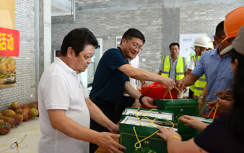在工地現(xiàn)場,董事長孔杰同志代表公司對奮戰(zhàn)在項(xiàng)目一線的同事和工友們表示慰問,對他們在烈日下仍然堅(jiān)持加班加點(diǎn)、冒酷暑、戰(zhàn)高溫的辛勤工作表示感謝,并帶領(lǐng)大家深入到工地職工食堂和宿舍,了解工友們的伙食情況和住宿條件,囑咐現(xiàn)場負(fù)責(zé)同志要讓大家吃得安全、住得放心、注意防暑、保重身體,安全生產(chǎn)。