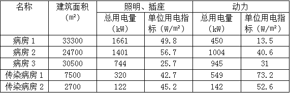 2.3 病房樓各類負(fù)荷用電指標(biāo)