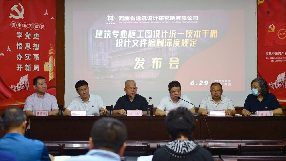 6月29日下午于公司報(bào)告廳召開(kāi)了河南省建筑設(shè)計(jì)研究院有限公司《建筑專業(yè)施工圖設(shè)計(jì)統(tǒng)一技術(shù)手冊(cè)》及《建筑專業(yè)施工圖文件編制深度規(guī)定》發(fā)布會(huì),公司建筑專業(yè)副主任建筑師及以上人員與會(huì),公司董事長(zhǎng)孔杰、常務(wù)副總經(jīng)理安杰、副總經(jīng)理張映珍、副總經(jīng)理鄭彥凱、總建筑師楊武、總工程師蔡黎明出席了會(huì)議。