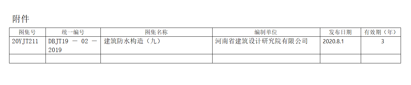 關(guān)于發(fā)布河南省工程建設(shè)標(biāo)準(zhǔn)設(shè)計《建筑防水構(gòu)造(九)》圖集的公告
