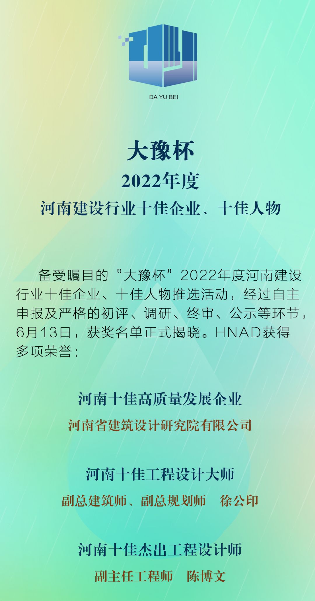 HNAD榮譽(yù) | 大豫杯2022年度河南建設(shè)行業(yè)十佳企業(yè)、十佳人物
