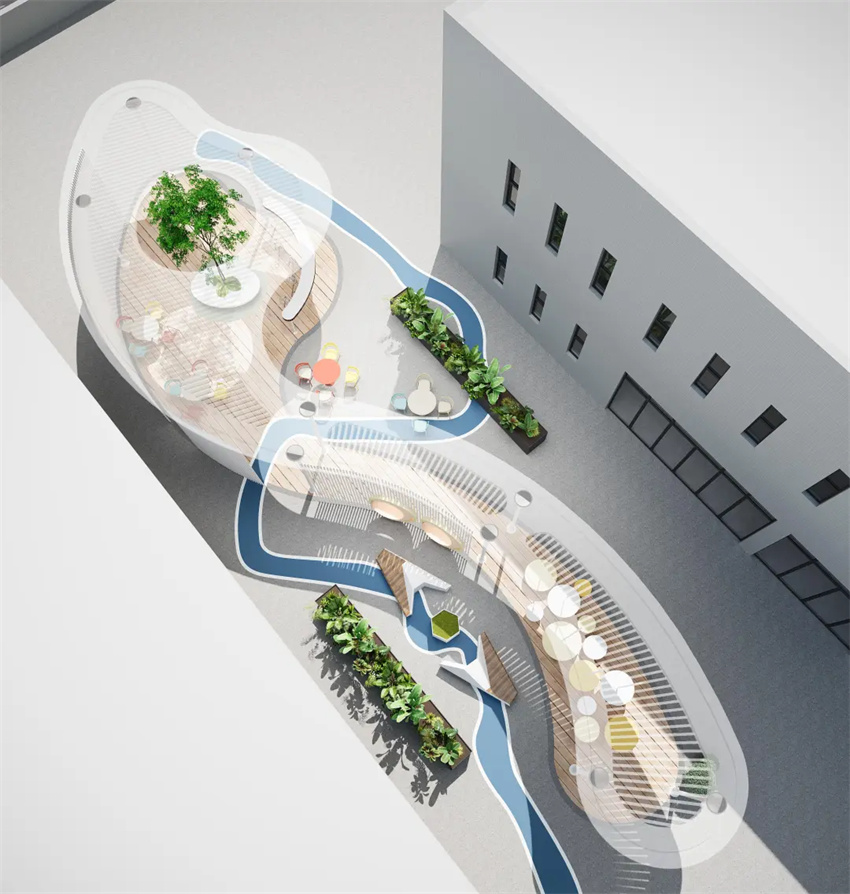 項(xiàng)目立足“立德樹人、服務(wù)育人”的核心理念,設(shè)計(jì)以“水之靈動、工之匠心”為靈感主線,構(gòu)建集黨團(tuán)建設(shè)、學(xué)術(shù)交流、生活服務(wù)、文化創(chuàng)意于一體的復(fù)合型空間。將水文化符號與現(xiàn)代高校服務(wù)需求相融合,打造兼具文化認(rèn)同感與時代適應(yīng)性的“第三成長空間”。