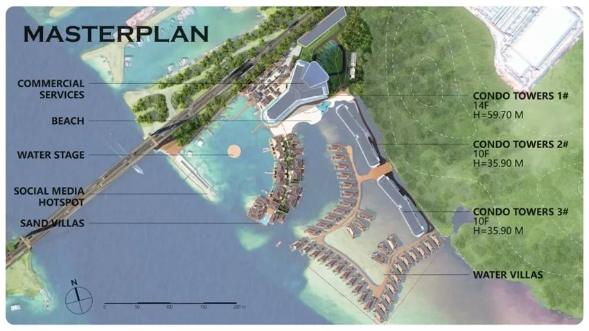 項(xiàng)目由下屬子公司河南省建院勘測設(shè)計(jì)有限公司中標(biāo),合同金額約為1094萬元,位于南太平洋島國帕勞KB大橋東側(cè),北面為城市交通主干道,項(xiàng)目距離機(jī)場4公里,交通發(fā)達(dá);項(xiàng)目包括單層商業(yè)項(xiàng)目(約為15棟),高度14層的1#公寓,高度9層的2#、3#公寓,15棟單層沙屋和39棟單層水屋。項(xiàng)目位于海洋珊瑚島上,整體項(xiàng)目西面和南面鄰海,北側(cè)為KB公路大橋,大橋外為海洋,東面為填海陸地。項(xiàng)目1#公寓和商業(yè)位于填海陸地之上,2#、3#公寓、沙屋和水屋位于海上。