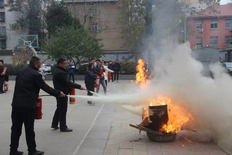 各部門領(lǐng)導(dǎo)高度重視,均能按照公司消防演練通知要求,安排人員參與。辦公室郭慧主任全面負(fù)責(zé)滅火演練活動(dòng),清點(diǎn)到場(chǎng)人數(shù),宣讀公司2019年滅火演練方案,發(fā)布演練開始指令,演練按計(jì)劃進(jìn)行,參加演練人員手持干粉滅火器分小組有效地?fù)錅缑骰?。演練開始前,邀請(qǐng)年捷消防設(shè)備公司隨經(jīng)理實(shí)地為現(xiàn)場(chǎng)人員講解、示范滅火器正確操作使用方法。公司28個(gè)部門指定員工、14家門面房租戶代表、職工食堂人員共70多人參加此次消防滅火演練活動(dòng),通過實(shí)際操作,使大家掌握了正確使用滅火器的方法,增強(qiáng)了自我保護(hù)能力,具備了一定的滅火知識(shí)和技能。