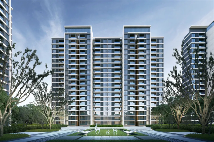 項(xiàng)目容積率1.0-2.9,建筑限高80米,建筑密度小于25%,配建12班幼兒園,綜合服務(wù)中心。幼兒園均布置在南側(cè)道路與城市支路交叉口位置。綜合服務(wù)用房用地及交通條件獨(dú)立,便于后期使用。地面機(jī)動(dòng)車沿用地外圍布置,機(jī)動(dòng)車出入口結(jié)合項(xiàng)目入口設(shè)置,地面及地下非機(jī)動(dòng)車停車區(qū)的出入口及坡道均結(jié)合小區(qū)出入口布置,實(shí)現(xiàn)人車分流。幼兒園、商業(yè)等配套不僅考慮社區(qū)使用便捷性,還與周邊社區(qū)及學(xué)校相融合。歸家大堂結(jié)合商業(yè)及人行動(dòng)線設(shè)置,對(duì)望社區(qū)景觀核心區(qū)。地塊采用經(jīng)典的灰白配色,構(gòu)圖對(duì)稱,設(shè)計(jì)鐘采用T型交錯(cuò)的構(gòu)成手法,增加了建筑立面的變化,強(qiáng)化了設(shè)計(jì)的現(xiàn)代感。