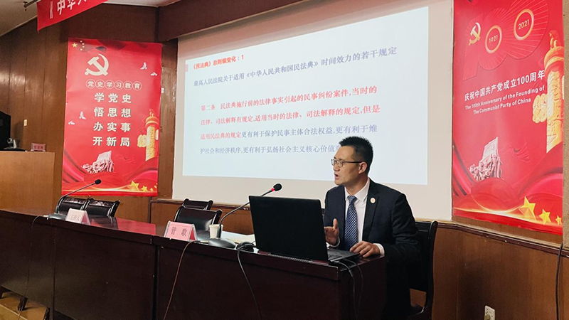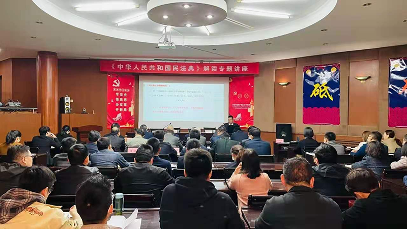 為深入貫徹習(xí)近平法治思想,加強(qiáng)法律法規(guī)知識(shí)學(xué)習(xí),進(jìn)一步提升公司黨員干部的法治思維和經(jīng)營(yíng)管理水平,確保依法經(jīng)營(yíng)、依法治企,根據(jù)年度黨建工作計(jì)劃,4月16日上午,公司黨委舉辦《民法典》專題輔導(dǎo)講座,邀請(qǐng)河南國(guó)銀律師事務(wù)所專職律師管歌講授“民法典重要規(guī)則變化解讀”。公司黨委書記安杰主持講座,公司黨委委員、各黨支部書記及經(jīng)營(yíng)管理人員,以及國(guó)銀黨員律師團(tuán)隊(duì)60余人參加活動(dòng)。