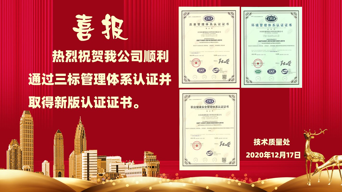 熱烈祝賀我公司順利通過三標(biāo)管理體系認(rèn)證并取得新版認(rèn)證證書