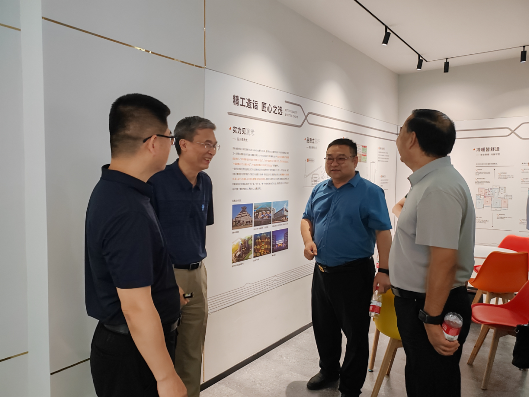 河南四建集團總裁賈俊鋒一行在我公司代表與和清園置業(yè)有限公司總經理張玉民的陪同下參觀了和清園置業(yè)東悅水岸·和悅園項目城市展廳,了解項目的建設與在售情況,雙方就EPC、BIM、裝配式等新業(yè)務發(fā)展與合作方向進行了技術交流。