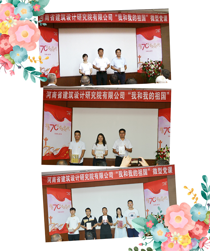為慶祝中華人民共和國成立70周年,大力弘揚以愛國主義為核心的偉大民族精神,充分宣傳展示中華人民共和國成立70年來特別是改革開放以來的光輝歷程、偉大成就和寶貴經(jīng)驗,按照省住房城鄉(xiāng)建設廳和公司“不忘初心、牢記使命”主題教育工作安排,7月23日上午,公司“我和我的祖國”微型黨課比賽在報告廳舉行。公司黨委委員、各黨支部書記出席比賽并擔任評委,各黨支部委員及黨建聯(lián)絡員到場觀摩聆聽。